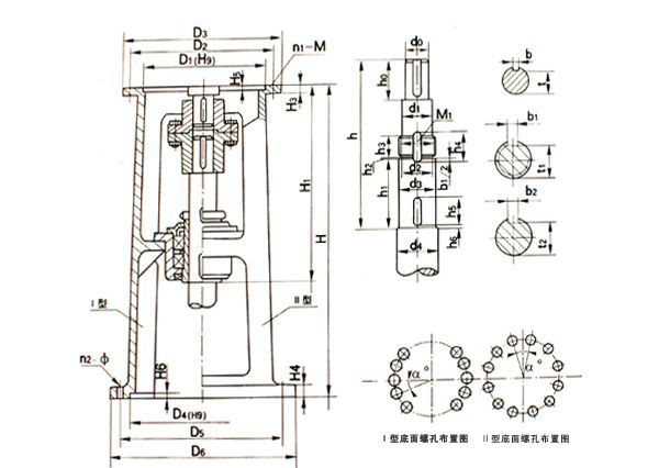 1.主要參數(shù)及尺寸 | 型號(hào) | H1 | H3 | H4 | H5 | H6 | 輸入端接口 | 輸出端接口 | | D1 | D2 | D3 | n1-M | D4 | D5 | D6 | a˙ | n2-ф | | DJ,LDJ30 | A | 320 | 15 | 20 | 4 | 6 | 140 | 160 | 190 | 4-M10 | 240 | 285 | 315 | 120 | 10-ф14 | | B | 200 | 230 | 260 | 6-M12 | 1130 | 12-ф14 | | DJ,LDJ35 | A | 334 | 17 | 20 | 5 | 6 | 170 | 200 | 230 | 6-M10 | 260 | 320 | 360 | 120 | 10-ф14 | | 6-M12 | 1130 | 12-ф14 | | DJ,LDJ40 | A | 334 | 17 | 20 | 4 | 6 | 200 | 230 | 260 | 6-M10 | 260 | 320 | 360 | 120 | 10-ф14 | | B | 230 | 260 | 290 | 6-M12 | 1130 | 12-ф14 | | DJ,LDJ45 | A | 338 | 20 | 20 | 5 | 6 | 200 | 230 | 260 | 6-M10 | 260 | 320 | 360 | 120 | 10-ф14 | | 6-M12 | 1130 | 12-ф14 | | DJ,LDJ55 | A | 372 | 22 | 24 | 6 | 6 | 270 | 310 | 340 | 6-M10 | 325 | 400 | 435 | 30 | 12-ф14 | | B | 5 | 305 | 8-M12 | | DJ,LDJ65 | A | 447 | 22 | 24 | 6 | 6 | 316(320) | 360 | 400 | 8-M12 | 350 | 420 | 460 | 30 | 12-ф18 | | 8-M16 | | DJ,LDJ70 | A | 447 | 22 | 24 | 6 | 6 | 316(320) | 360 | 400 | 8-M12 | 350 | 420 | 460 | 30 | 12-ф18 | | B | 5 | 320 | 8-M16 | | DJ,LDJ80 | A | 495 | 22 | 28 | 6 | 8 | 345 | 390 | 430 | 8-M12 | 380 | 455 | 495 | 30 | 12-ф18 | | B | 5 | 360 | 410 | 460 | 8-M20 | | DJ,LDJ90 | A | 519 | 22 | 28 | 7 | 8 | 400 | 450 | 490 | 12-M16 | 430 | 510 | 555 | 30 | 12-ф23 | | 12-M20 | | DJ,LDJ100 | A | 535 | 25 | 28 | 9 | 10 | 455(460) | 520 | 580 | 12-M20 | 480 | 560 | 600 | 22.5 | 12-ф23 | | B | 5 | 470 | | DJ,LDJ110 | A | 660 | 30 | 28 | 11 | 10 | 520 | 590 | 650 | 12-M20 | 560 | 65 | 700 | 22.5 | 16-ф27 | | B | 6 | | DJ,LDJ120 | A | 660 | 30 | 38 | 11 | 10 | 520 | 590 | 650 | 12-M20 | 560 | 650 | 700 | 22.5 | 16-ф27 | | DJ,LDJ130 | A | 790 | 45 | 40 | 12 | 10 | 680 | 800 | 880 | 12-M30 | 720 | 810 | 880 | 18 | 20-ф27 | | B | 9 | | DJ,LDJ140 | A | 790 | 45 | 40 | 12 | 12 | 680 | 800 | 880 | 12-M30 | 720 | 810 | 880 | 18 | 20-ф27 | | 9 | | DJ,LDJ150 | - | 790 | 45 | 45 | 14 | 12 | 820 | 940 | 1020 | 12-M30 | 840 | 940 | 1020 | 22.5 | 16-ф33 | | 10 | | DJ,LDJ160 | - | 810 | 50 | 50 | 14 | 12 | 820 | 940 | 1020 | 12-M30 | 840 | 940 | 1020 | 22.5 | 16-ф33 | | 10 | | DJ,LDJ180 | - | 910 | 55 | 50 | 14 | 12 | 960 | 1080 | 1020 | 12-M30 | 970 | 1080 | 1160 | 18 | 20-ф33 |